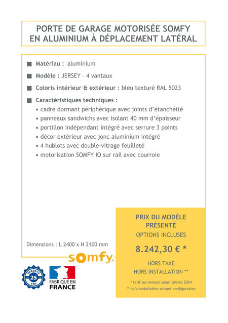 La porte de garage coulissante en aluminium, PVC ou en bois combine praticité et esthétique, offrant un gain de place optimal et une ouverture fluide. Choisissez l'aluminium pour son style moderne et sa résistance, ou le bois pour une touche chaleureuse et naturelle. Avec son design élégant et sa fonctionnalité, cette porte de garage rehausse l'attrait de votre maison tout en vous offrant un confort au quotidien.