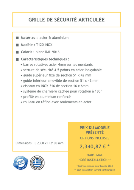 La grille de défense, qu'elle soit fixe ou amovible, assure une sécurité optimale tout en apportant une touche esthétique à vos fenêtres. Sa conception robuste protège efficacement votre domicile contre les intrusions, sans compromettre la vue ni l'apport de lumière naturelle. Avec un choix entre la fixité pour une sécurité permanente ou l'amovibilité pour plus de flexibilité, c'est une solution élégante pour sécuriser votre maison en toute tranquillité.